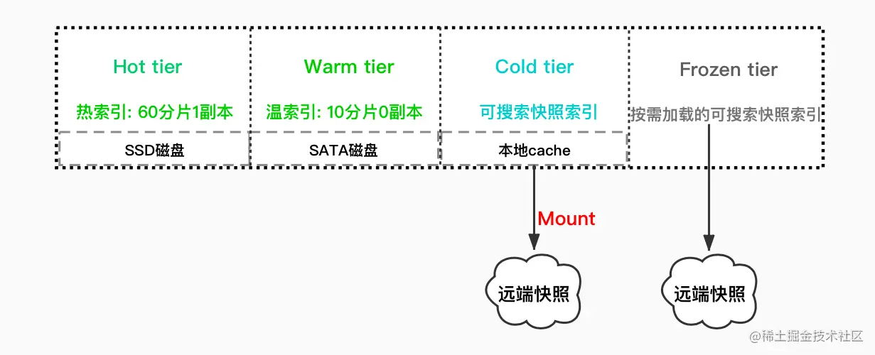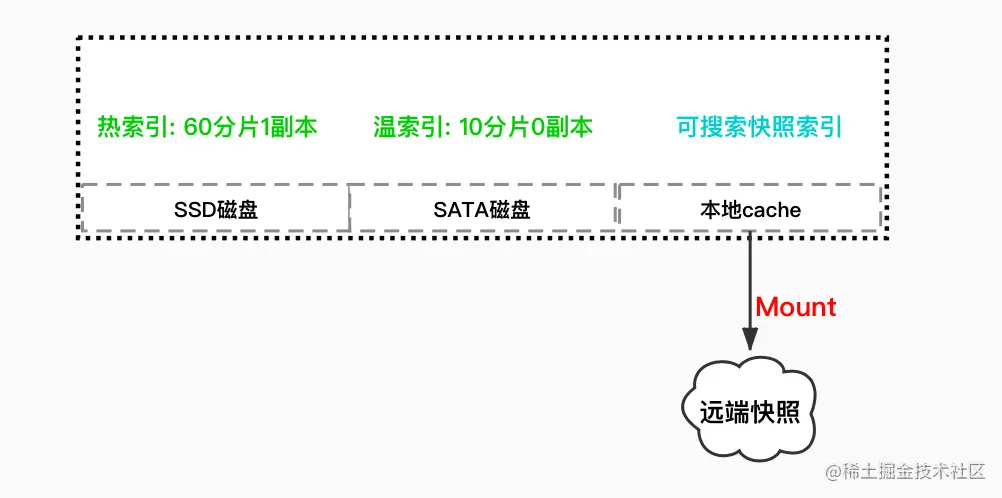在极端情况下,实际上只需要对这些老的查询频率非常低的索引,只进行备份,真正需要查询的时候再 mount 到集群上,当然,需要容忍缓慢的查询过程。