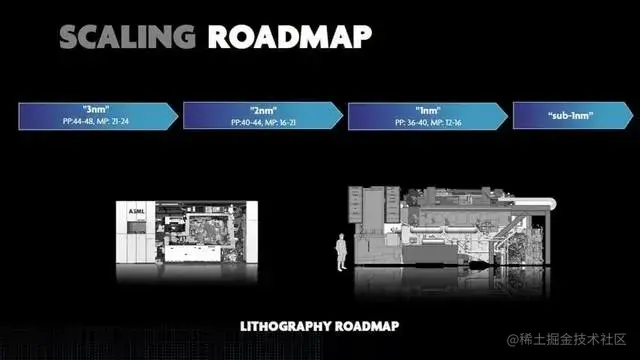 近日,与 ASML(阿斯麦)合作研发光刻机的比利时半导体研究机构 IMEC 公布了 3nm 及以下制程的在微缩层面技术细节。具体来看, ASML 对于 3m、 2nm、 1.5nm、 1nm 甚至 Sub 1nm 都做了清晰的路线规划,且 1nm 时代的光刻机体积将增大不少。显然, 1nm 光刻机需要更强大的物理极性,2nm 之后需要更高分辨率的曝光设备。目前已经投入量产的 7nm 、5nm 工艺已经引入了 0.33NA 的 EUV 曝光设备,而 ASML 已经完成了 0.55NA 曝光设备的基本设计,预计在 2022 年实现商业化。