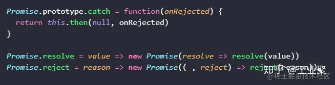 catch 方法和 resolve/reject 静态方法的实现如上所示。Promise.all 和 Promise.race 的实现,留给感兴趣的读者,作为练习。