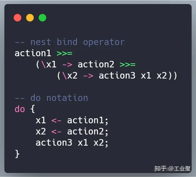 这种处理不是 JavaScript 里特有的,早在 20 多年前的上世纪 90 年代,Haskell 里就用 do-notation 这种语法糖,将嵌套的 bind operator 扁平化。