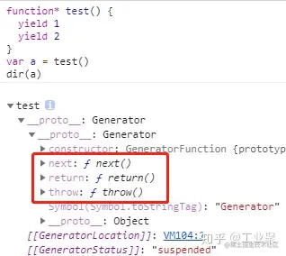 generator function 可视为多个 callback 函数的整合,它返回一个 generator 对象,该对象包含 next, throw 和 return 三个方法,其中 generator.next(value) 把 value 发送给 generator function。