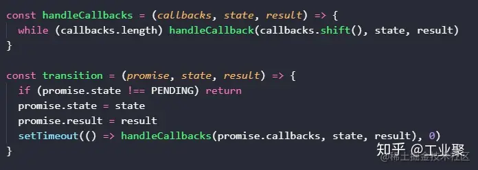 transition 函数扩充如上,当状态变更时,异步清空所有 callbacks。