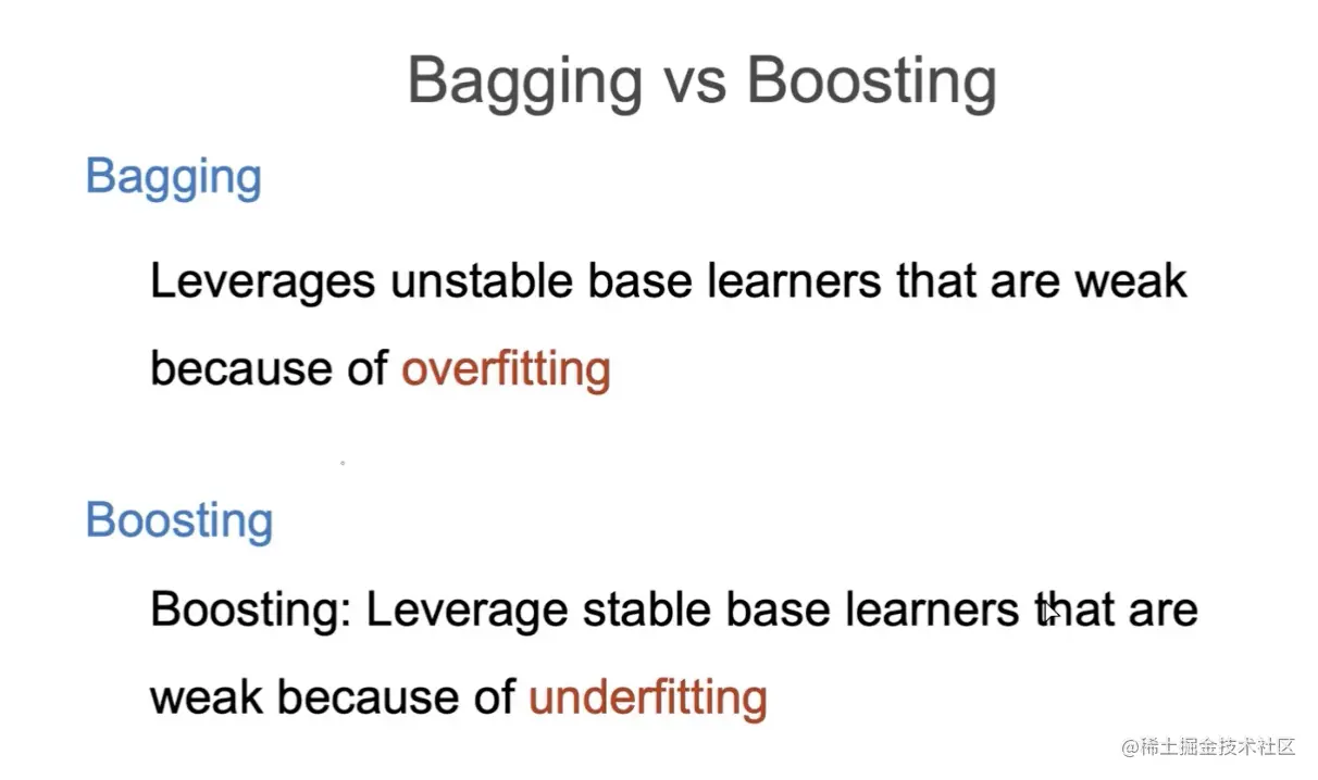 共同点:bagging和boosting都是由很多个弱的模型 (weak learners/ base learners) 构成的