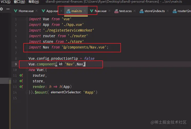 最初我用router-link写导航的时候是写在App.vue的也就是容器组件上,但是这样做的话会有个问题,有些页面类似404页面是不需要有导航栏存在的,所以后来选择把导航栏单独做一个组件,分别在用到的页面中引入一遍,但是这样的话又有点重复有点麻烦,我最后决定在main.js中只引入一遍,把导航栏当作一个全局组件这样在单独的页面中就不需要重复引入了直接使用即可。