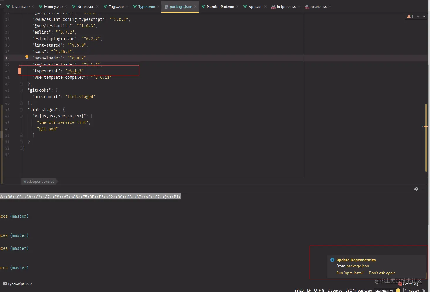 当你用webstorm直接修改package.json的时候,webstorm会自动提醒你要不要更新