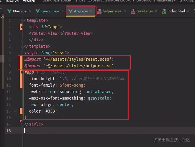 《Vue》全局的字体相关初始化样式是写在App.vue中的#app{}中