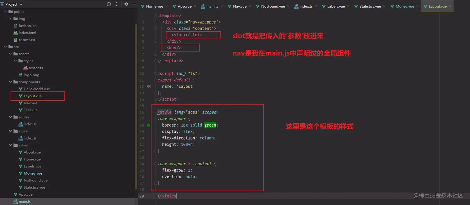 - 比如404页面还需要底部有个导航栏干嘛?因此就把导航栏包装成一个nav组件分别导入到页面中去