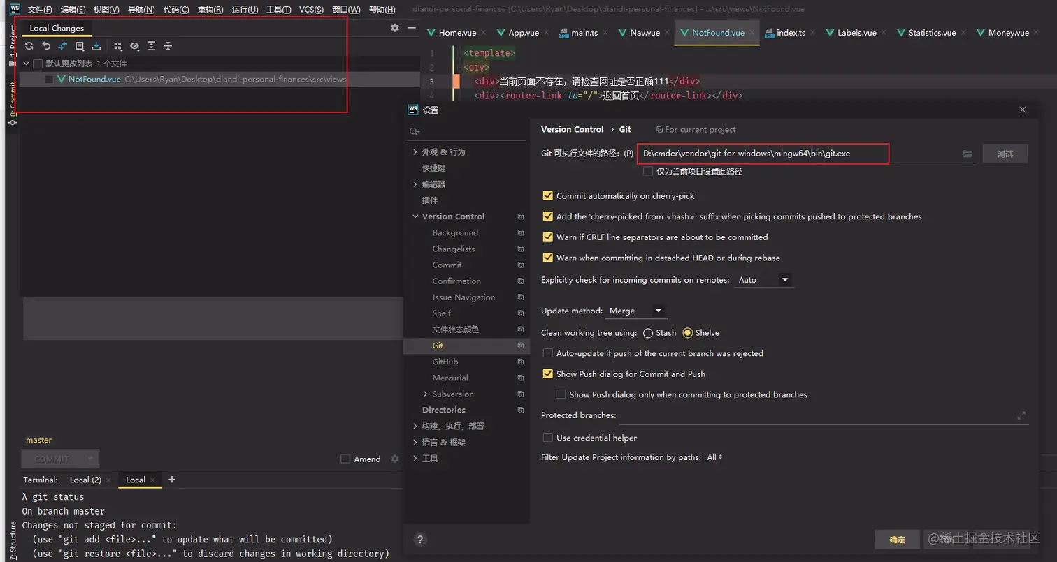 《webstorm》webstorm 中使用git可视化工具的前置是要配置完成git的路径
