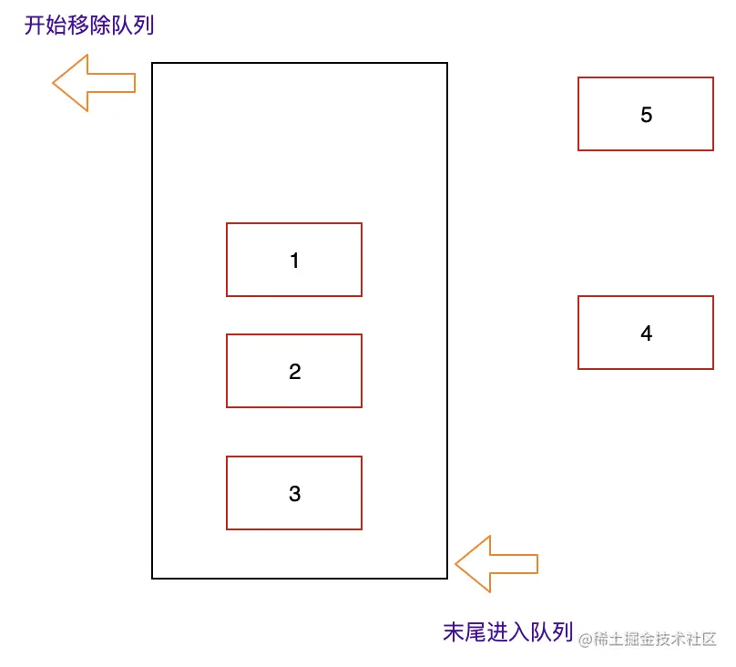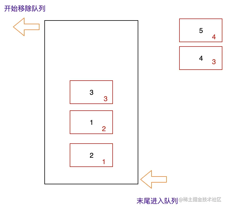 - 首先按照12345的顺序进入队列,1开始进入队列