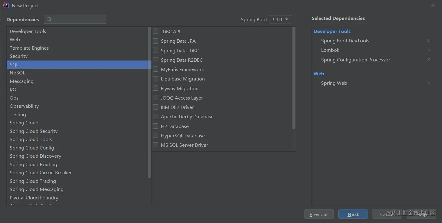 勾选需要的依赖