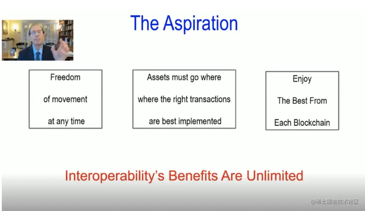 现在说说Algorand的互操作性技术:为什么我们需要区块链互操作性?因为任何区块链都不应该是一座孤岛,外面的世界永远比里面的世界大。如果你建立一个无法与其他区块链互操作的区块链,你将画地为牢。链式互通背后的诉求非常明确,每个人都享有从一个链到下一个链移动资产的自由。事实上,资产想要进入区块链,交易的最佳工具是区块链互操作性。让您可以享受到来自每个区块链的最佳效果,不同的区块链会在某些方面有更好的表现,区块链互通有无,好处无限。
