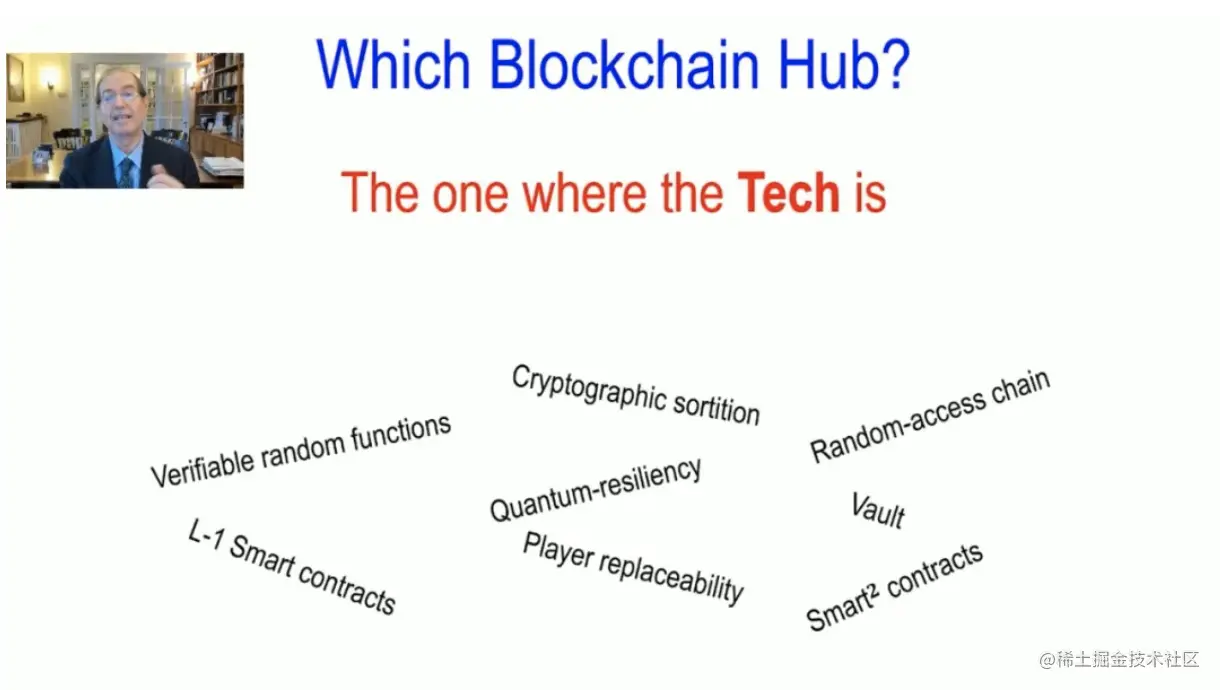 那么,在区块链领域,你想要哪个枢纽?我认为是技术所在枢纽。在我这儿,技术是指加密抽签、第一层智能合约、智能平方(smart2)合约等。