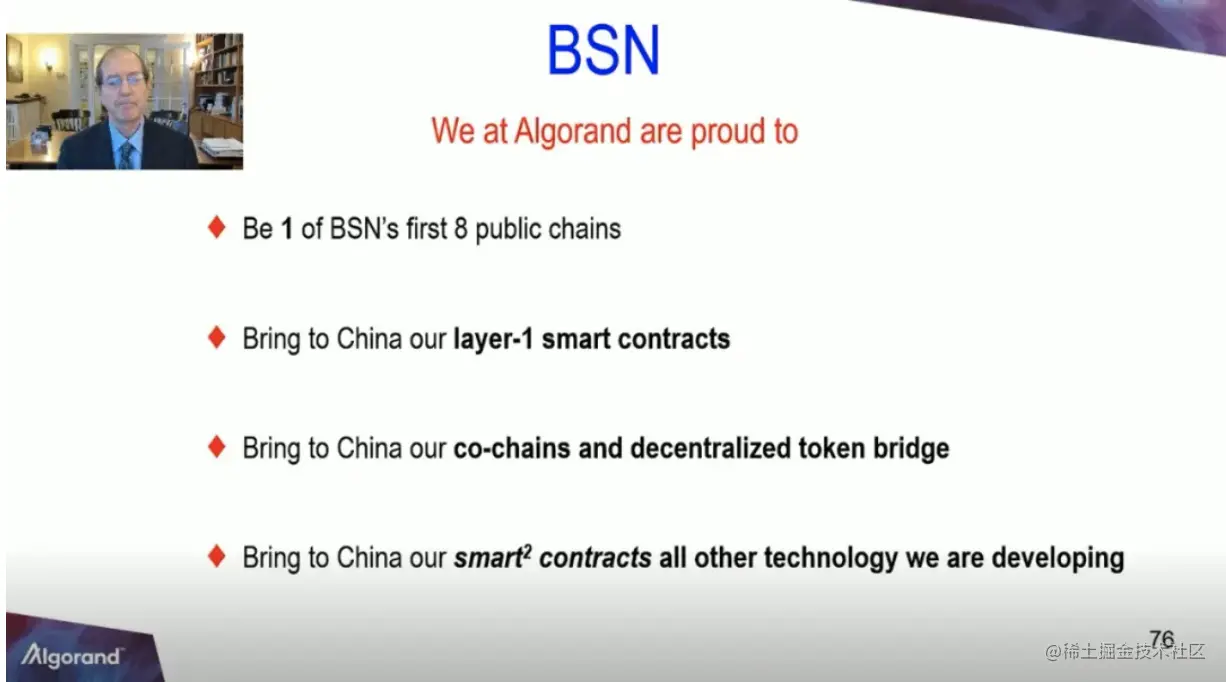 2020年11月27日,在湖北武汉举行的首届区块链服务网络BSN全球技术创新发展峰会上,Algorand创始人、图灵奖得主和MIT教授 Silvio Micali进行了关于**《区块链技术的过去、现在和未来》**的主题分享。