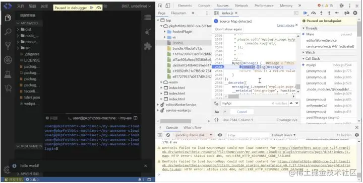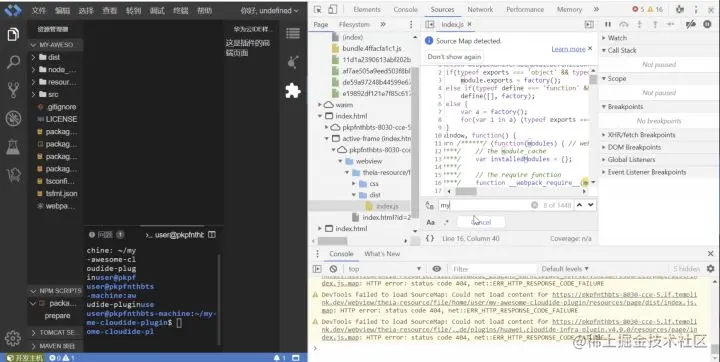 简单总结下,CloudIDE插件的调试其实分为前后端,后端的调试可以借助CloudIDE本身完成,而前端代码的调试则需要借助于浏览器的调试能力,在掌握调试技能之后在后续的插件开发过程中对疑难问题的定位和解决将非常有帮助。在后续的文章中将对插件的运行机制和API进行深入介绍,有兴趣的读者也可以先参考插件开发指南进行了解。