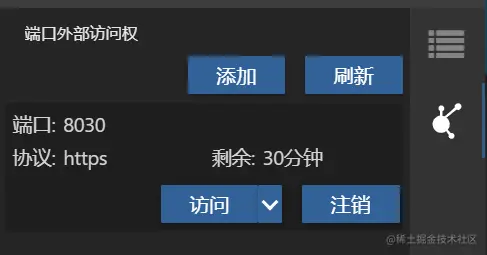 - 在弹出的端口外部访问权中给实例的监听端口添加外部访问权,注意:这里的协议需要选择https,添加完成之后如右图所示。