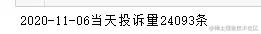 print(f"2020-11-06当天投诉量{_data[_data.投诉日期=='2020-11-06'].iloc[0,1]}条")
