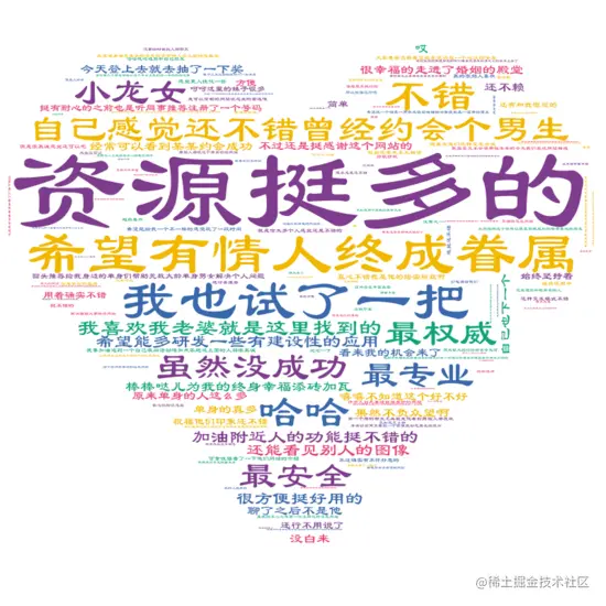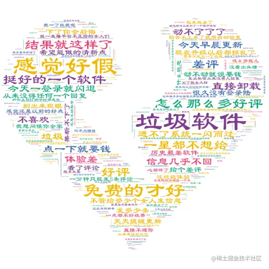 接着,我们将评论数据进行词云展示,代码实现如下: