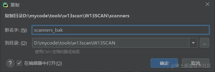 接下来我就可以正式编写插件了,为了防止编写过程中对插件目录造成损坏,我将scanners目录复制了一份,如下图所示