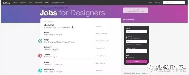 Dribbble 不只是全球最受欢迎的设计师社区,同样是设计师寻找远程工作的好出处。自从被 Tiny 收购后,Dribbble 的招聘属性正在慢慢增强,试着持续 PO 出自己的好作品,等待你的伯乐,同样你可以关注 Jobs 页面,给心仪的 Team 提交简历。