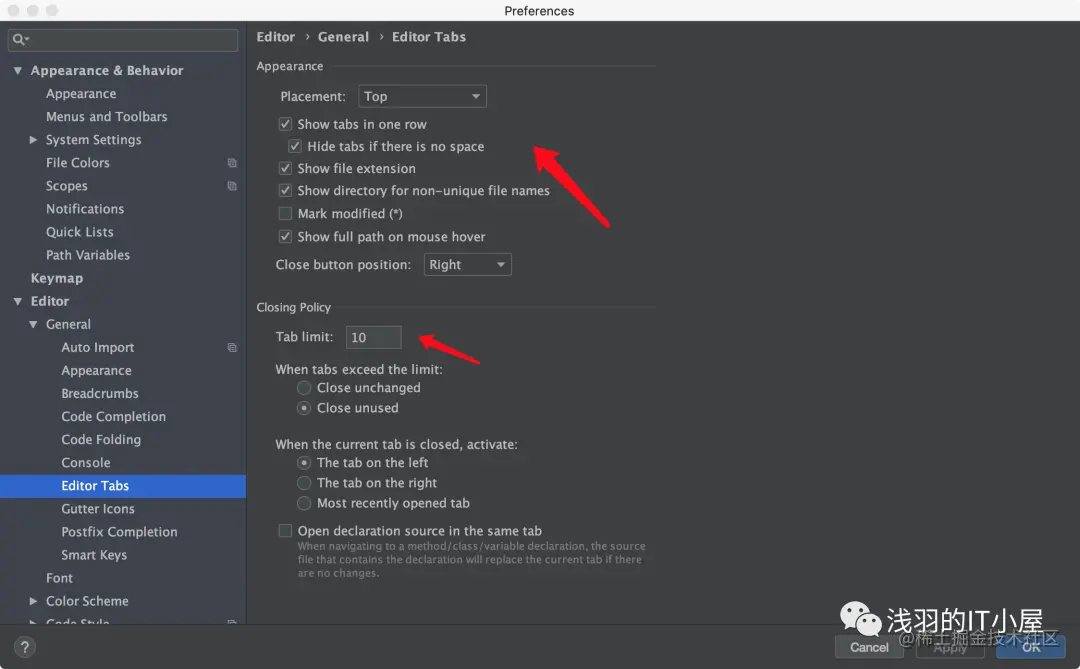 在intellij ->File ->Settings->搜索Editor Tabs