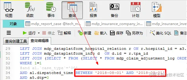 <日积月累>MySQL的时间查询技巧 小满满 2020-12-08 156 阅读1分钟 时间查询界限,如果是这样写,实际查询的是8月1号到8月31号的数据 在页面加载的时候,要查询出所有的数据,这样没有时间的话可能会查询的很慢,这时候可以使用时间戳设置一下开始结束时间;