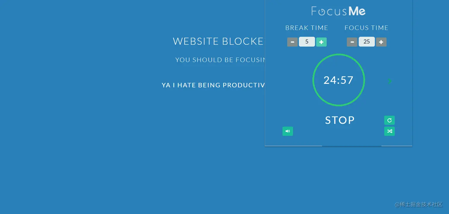 FocusMe 是一款提高注意力的扩展程序,它能让你保持专注。它是基于时间管理的番茄工作法,能够屏蔽让人分心的网站,这样你就能专注于工作。