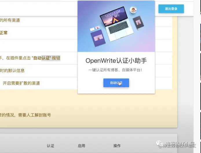 4.点击右上角已安装的插件,OpenWrite助手,在插件里点击“自动认证”按钮
