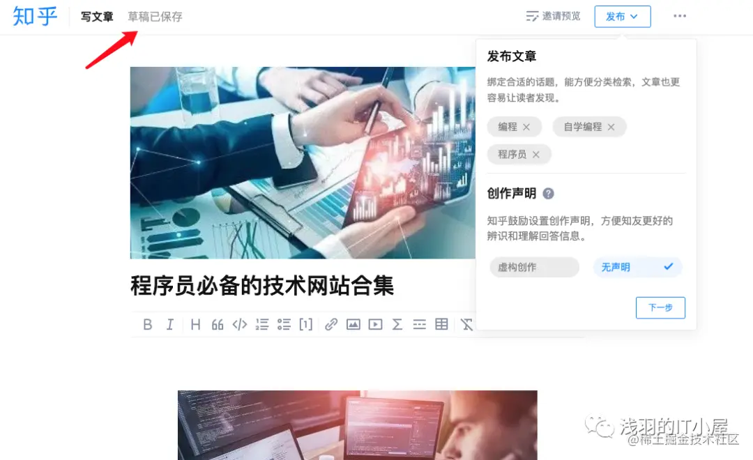 3.选择要同步的平台,等待一会,文章就会同步到知乎中,以草稿的形式存在,等待发布。