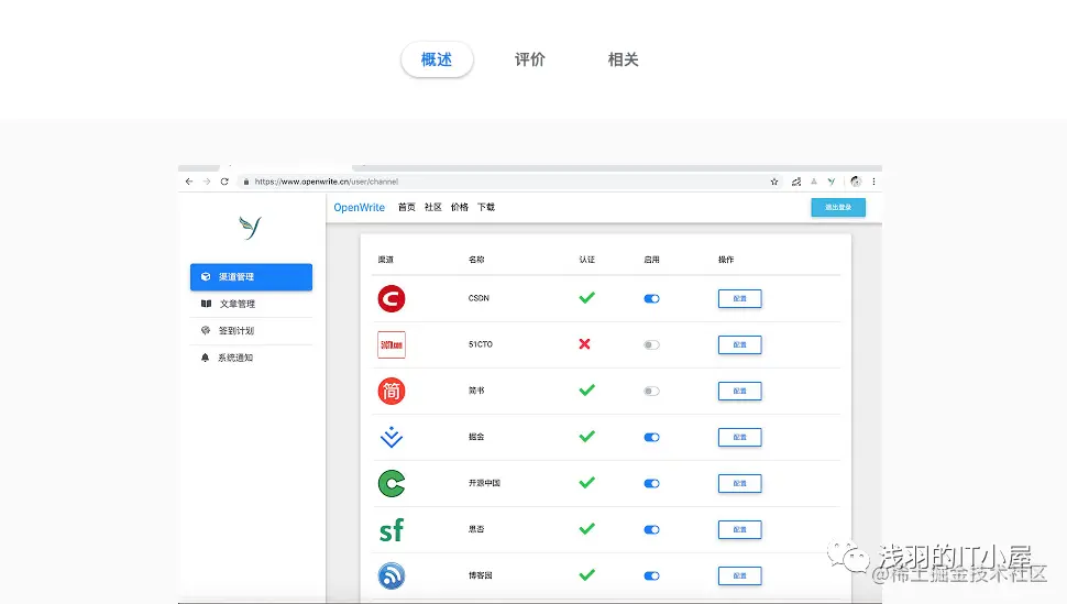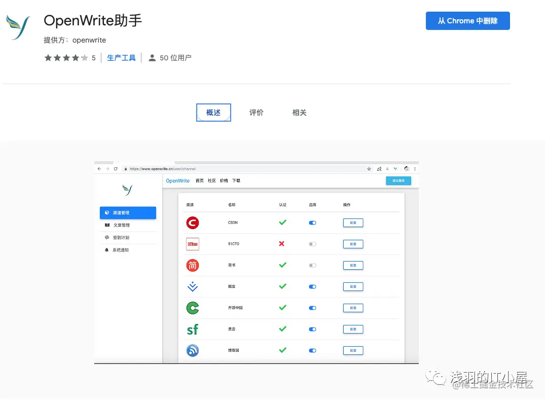 安全认证简书、CSDN、51CTO、开源中国、掘金、思否等平台,免登陆发布文章。OpenWrite助手是一款帮助科技媒体运营的账号管理工具,支持10+个科技类主流平台的账号管理。支持Markdown编辑文章,并且可以轻松一键分发到全网科技平台。OpenWrite在征得用户同意的情况下,获取用户登录状态信息(无须账号、密码信息)帮助用户实现跨平台的多账号管理,同时以此作为基础来实现多平台的一键分发功能。所有获取用户账号信息的行为,已在OpenWrite用户协议中告知用户,仅用于账号授权和发文,不做其他商业或违法的操作。