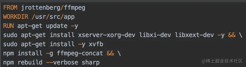 音视频处理有流量波动较大、对计算资源弹性要求高、监听视频上传事件以及依赖工作流和队列等服务的特性使得 FaaS 成为自建音视频业务上云的首选。然而这类场景中最常用的软件 FFmpeg 往往需要定制编译满足不同的需求。编译的二进制依赖编译环境中的共享对象(*.so)和 glibc 等库,与 FaaS 运行环境不兼容无法运行。重新编译不仅带来了额外工作,不同的依赖和版本也给业务稳定性带来了挑战。 如下图示例,使用已有 Dockerfile 将转码逻辑以及相关依赖保持现有的安装方式和完全隔离的容器沙箱运行环境,极大降低迁移成本,稳定性风险和 FaaS 的开发部署学习成本。