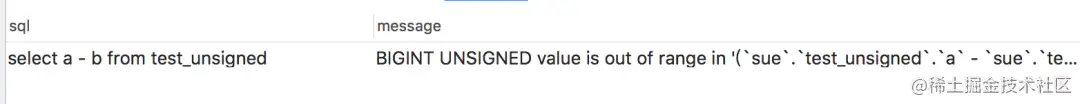 所以,在使用无符号字段时,千万要注意字段相减出现负数的坑,建议还是使用有符号字段,避免不必要的问题。