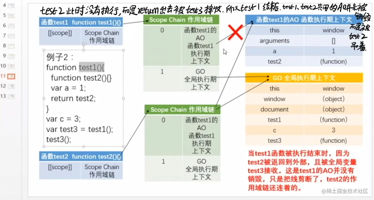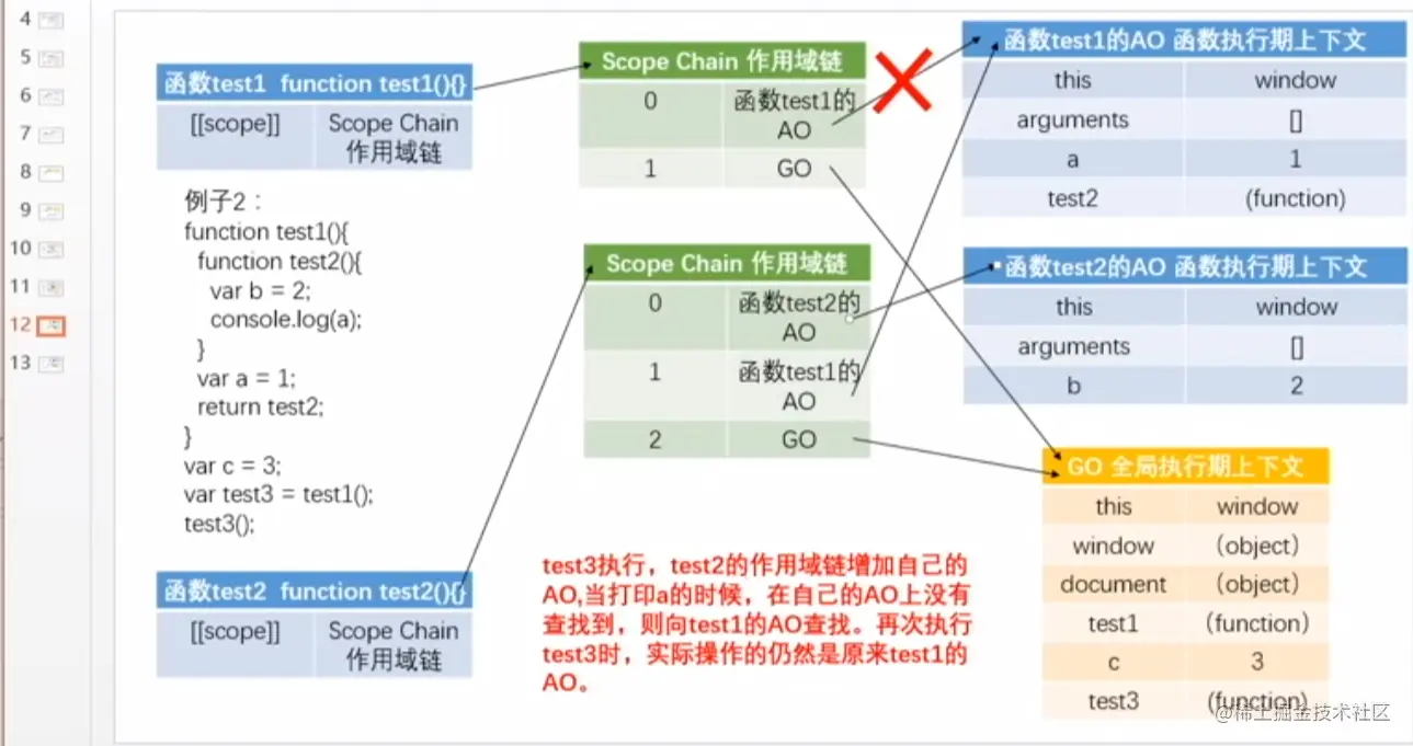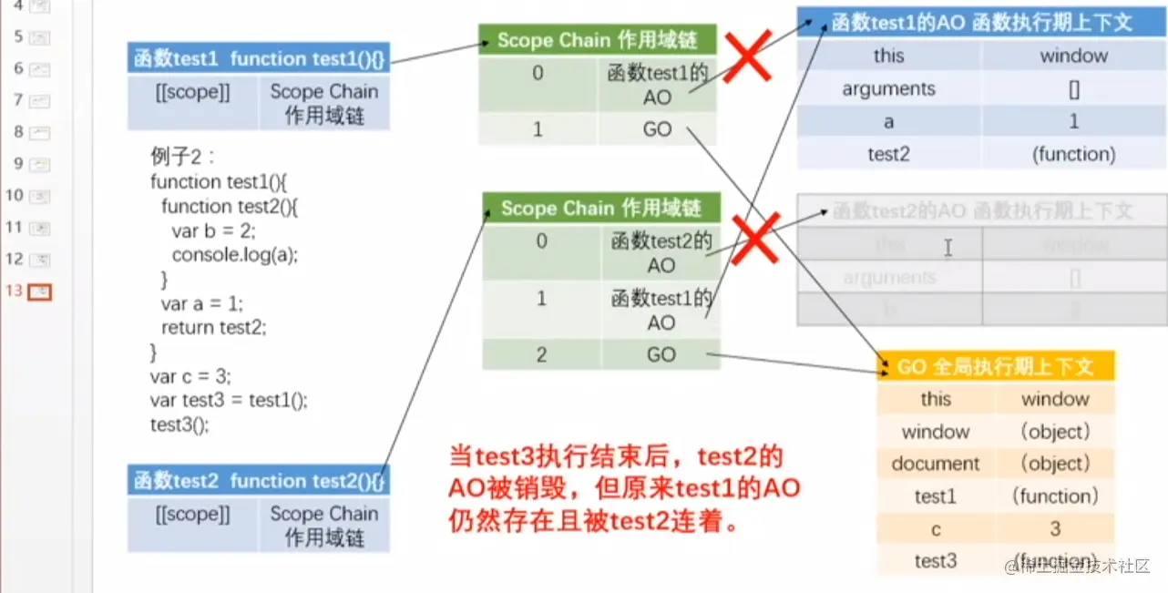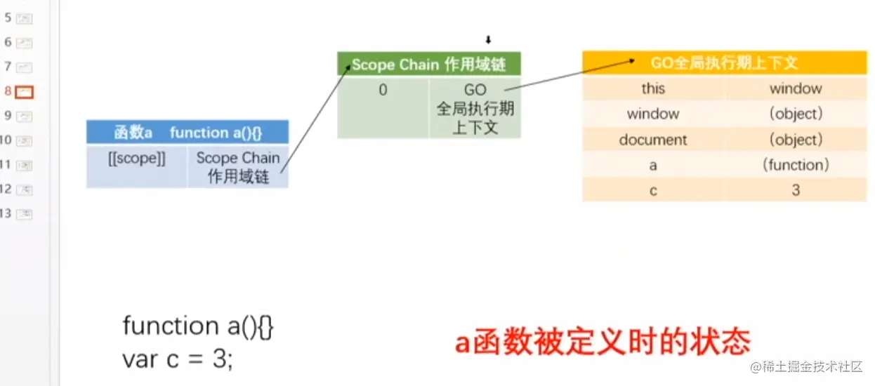 c 结束: c.[[scope]] 1:b ->AO; 2 : a-->AO; 3:GO
