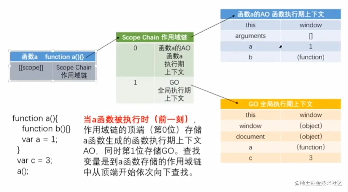 a 执行: a.[[scope]] -> 第0位 0: a -> AO; 1 : GO