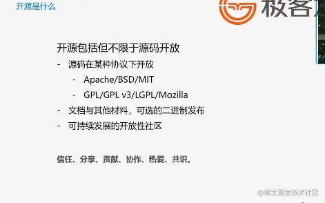 - 开源精神: 信任 分享 贡献 协作 热爱 共识