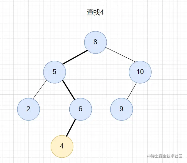 在二叉查找树中查找一个节点,我们先取根节点,如果它等于我们要查找的数据,那就返回。如果要查找的数据比根节点的值小,那就左子树中递归查找;如果要查找的数据比根节点的值大,那就右子树中递归查找。