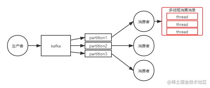 一个partition的消息只会发送给一个消费者,三个partition的消息只会分别发送给三个消费者,若是有第四个消费者,那么它将收不到消息。