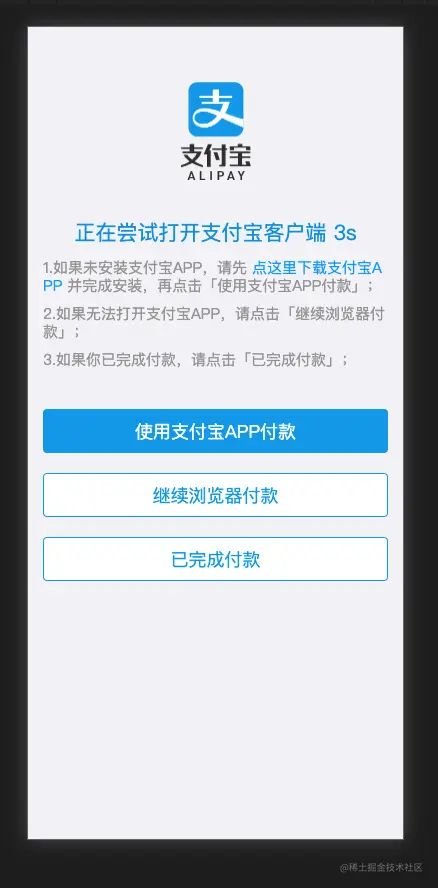 支付宝的交互流程与微信支付大致差不多,不同的是支付宝返回的是一个 html,前端需要操作这个 html 来触发支付。