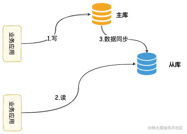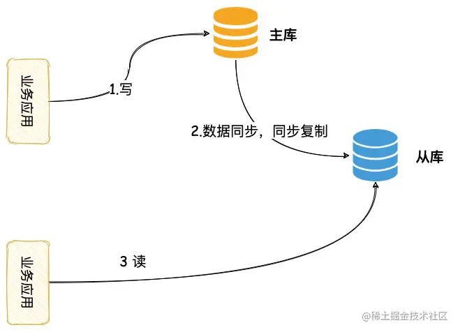 - 业务系统发起写操作,数据写主库
