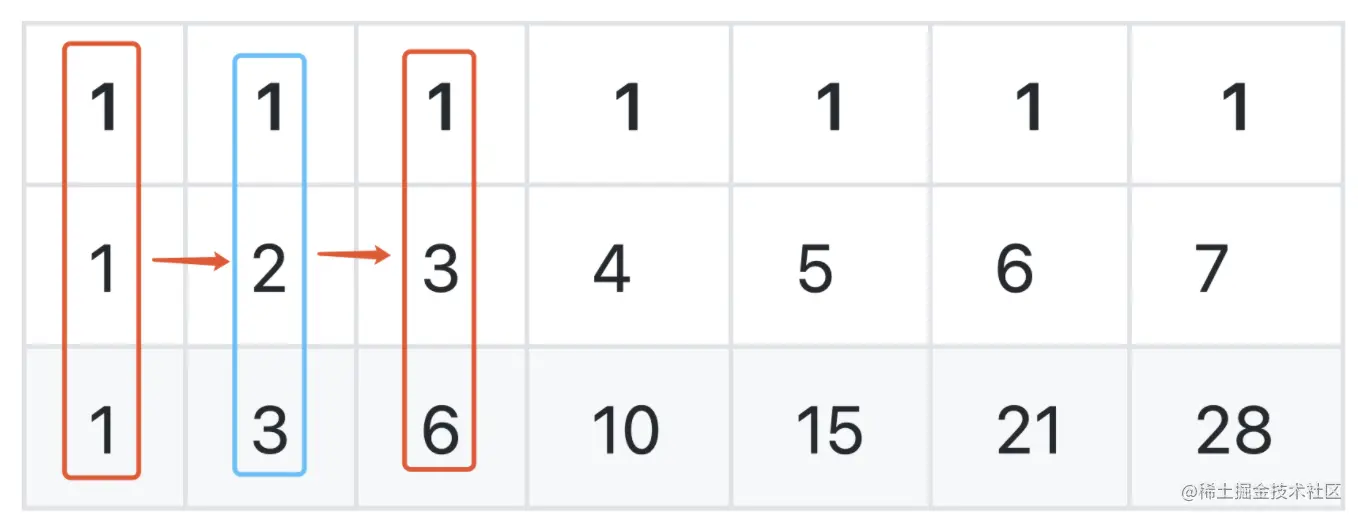 每一项都是左边和上边之和,所以很简单就可以求最后值了。