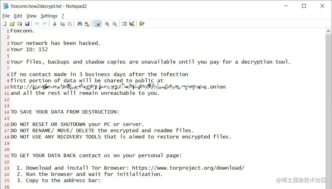 ▪ 富士康被黑客攻击,索要 2.3 亿元赎金:已加密约1200台服务器,窃取了100 GB的未加密文件,并删除 20~30TB 的备份