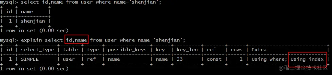 提示,如果你不清楚 explain 结果 Extra 字段为 Using index 的含义,请阅读前序文章:《如何利用工具,迅猛定位低效 SQL?》