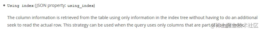 MySQL 官网,类似的说法出现在 explain 查询计划优化章节,即 explain 的输出结果 Extra 字段为 Using index 时,能够触发索引覆盖。