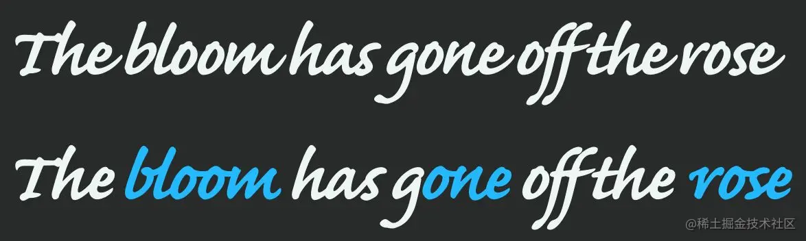 discretionary-ligatures启用自由连字(对应 OpenType 特性dlig),这种连字是自由的或者说可选的,由字体设计者自行决定。至于哪些地方会连字,需要参考字体文档。 -