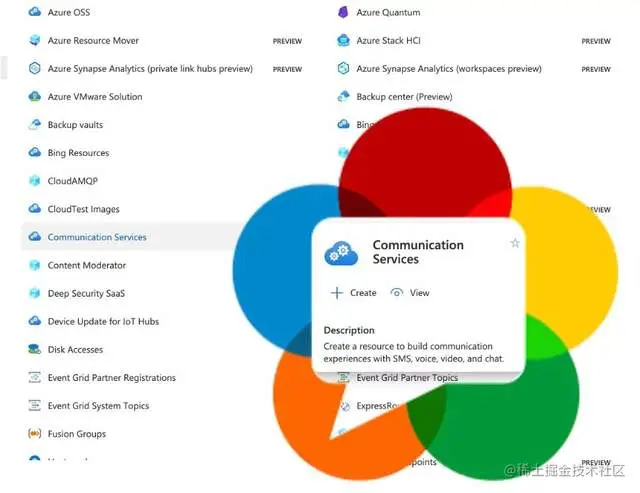如你所见,这也有一些有趣的特性。几周前,Microsoft宣布了Azure通信服务(ACS)。他们的云服务目录中的此新产品提供聊天,SMS,PSTN呼叫和视频通信。
