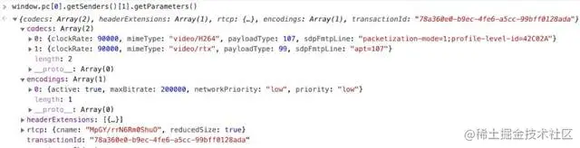 在H.264中选择的视频编解码器。它使用RTX重传来确保可靠性。ACS不包括联播支持,以使视频质量适应会议室中不同参与者的需求。同样至少在我测试的示例中,比特率非常低。你可以从发送者参数的下一个捕获中看到如何将其配置为以200kbps使用H264。