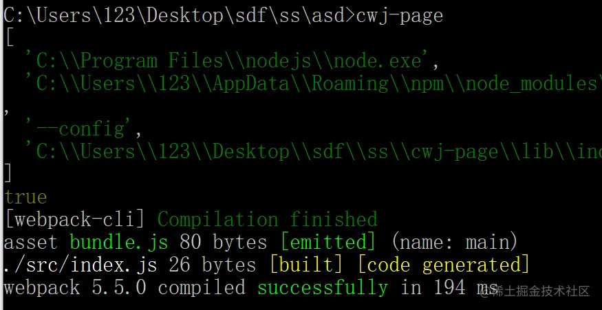 完成之后我们现在要把 cwj-page 发布 npm 或者直接本地软连接,因为我们后面的操作要完全使用黑盒指令对项目打包。所以在 cwj-page 下的终端进行 npm link,这样在全局安装目录下就会有一个 cwj-page 的文件。