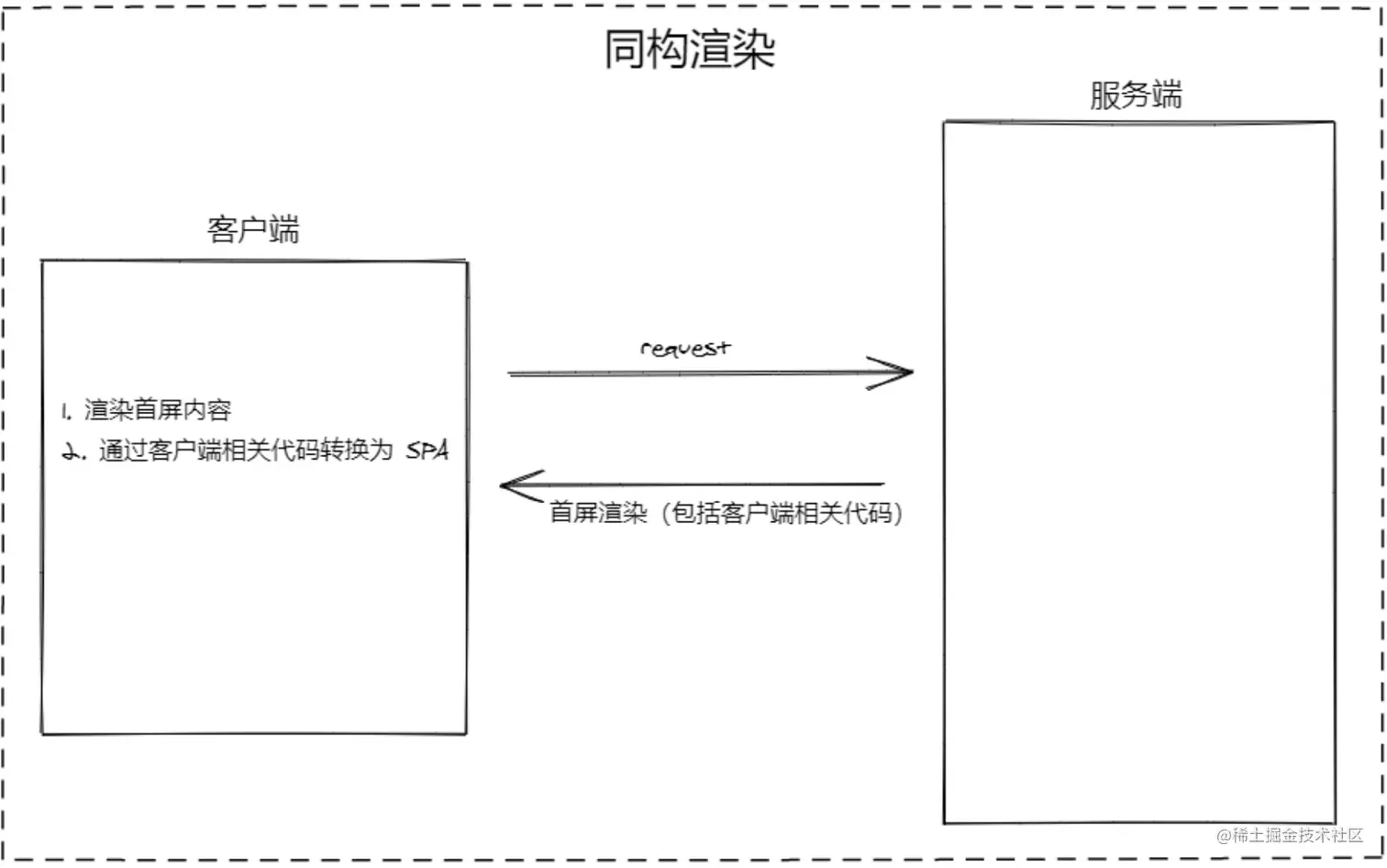同构渲染 = 后端渲染 + 前端渲染- 基于React、Vue等框架,客户端渲染和服务器端渲染的结合