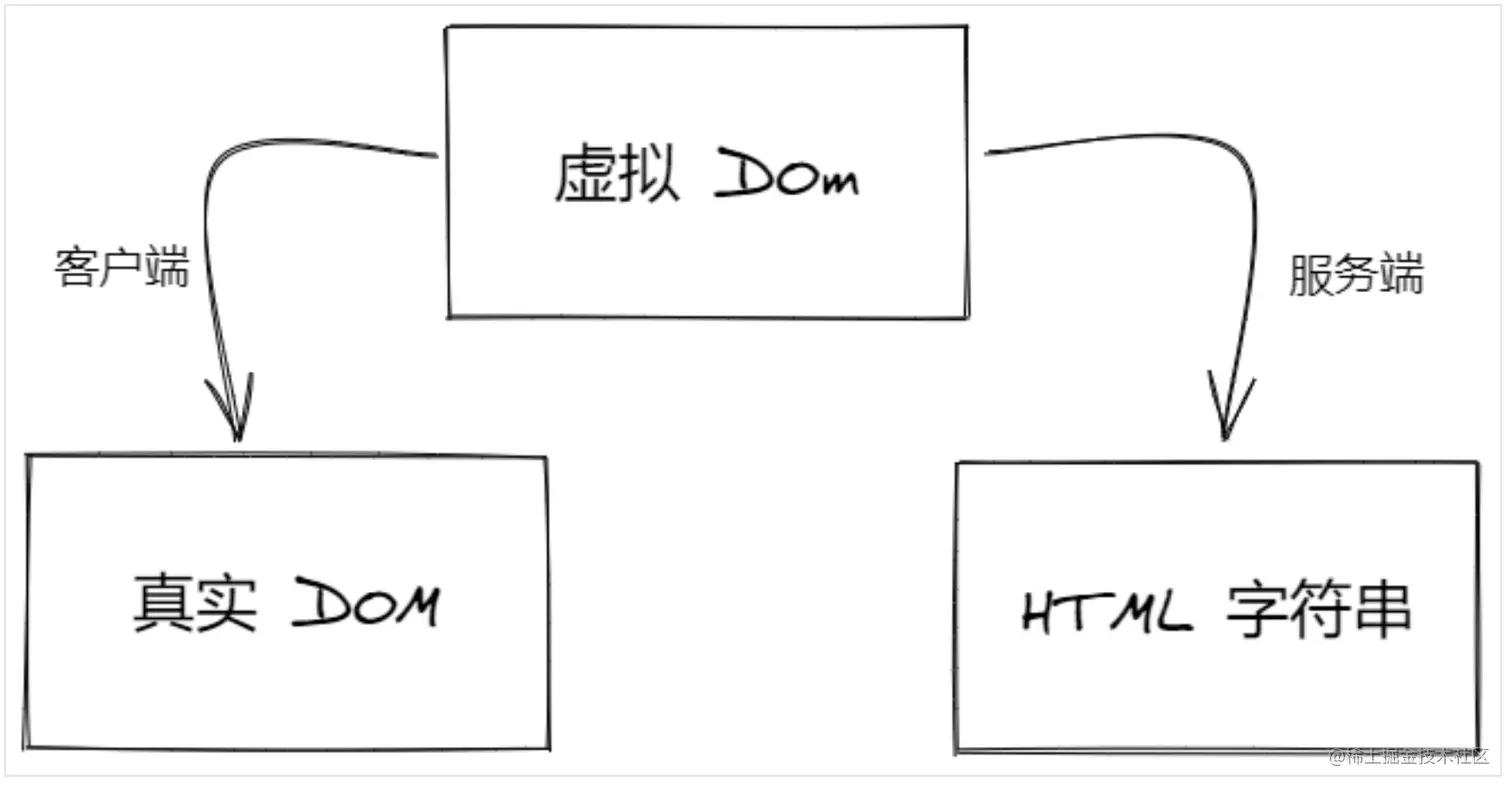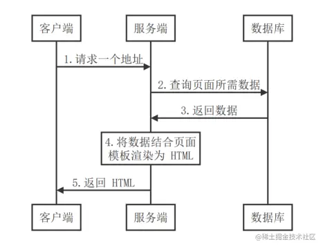 - 业界借鉴了传统的服务端直出 HTML 方案,提出在服务器端执行前端框架 (React/Vue/Angular)代码生成网页内容,然后将渲染好的网页内容返回给客户端,客户端只需要负 责展示就可以了;