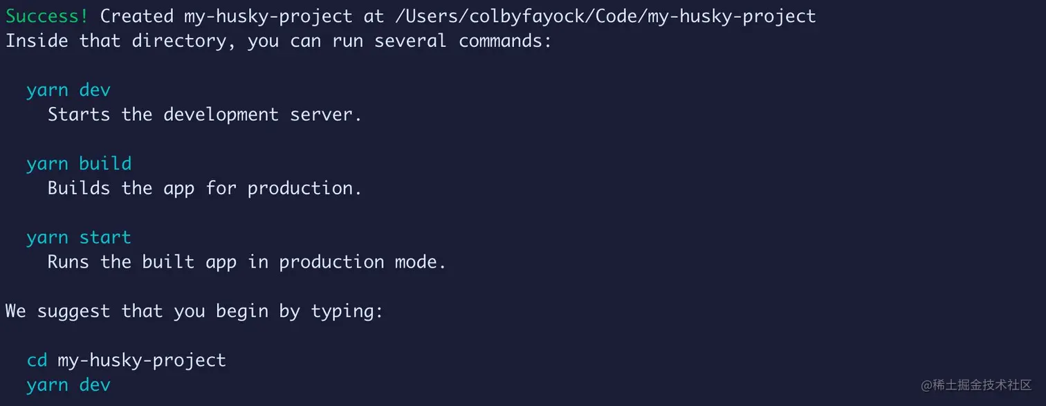 注意:你可以将my-husky-project替换为你要命名的目录。