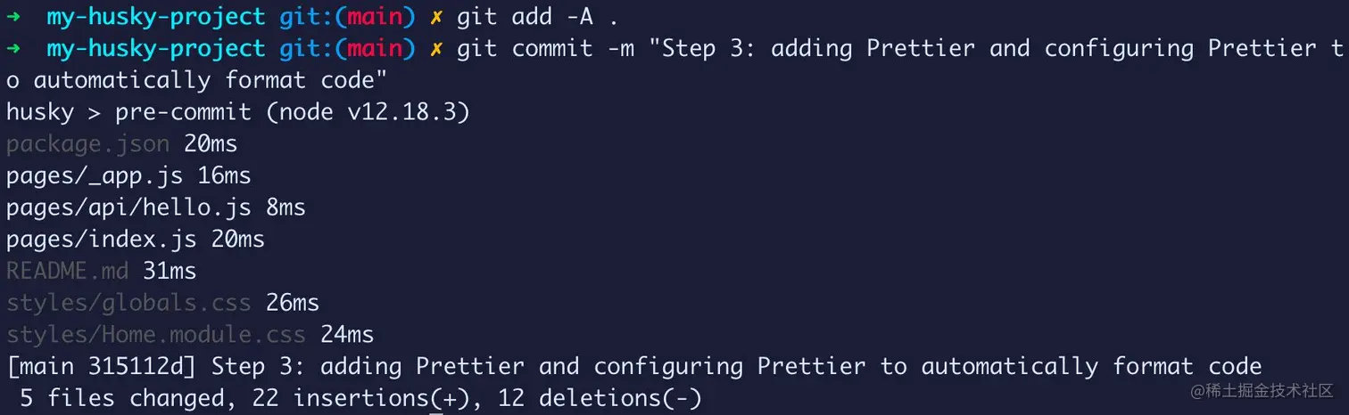 例如,如果我们想使用 Husky 和 Prettier 进行此操作,我们的配置可能看起来像下面这样:
